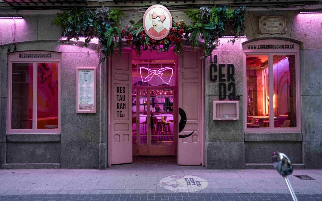 La iluminación exterior del local se convierte así en una extensión del logotipo: una firma luminosa que deja huella.