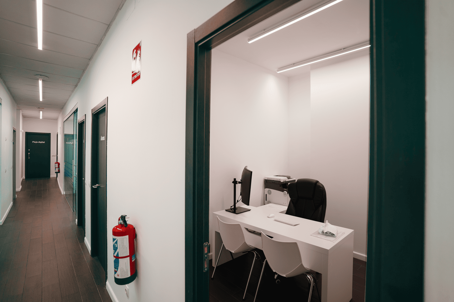 Requieren iluminación para pasillos de clínica dental uniforme y funcional que garantice seguridad, claridad y confort visual.