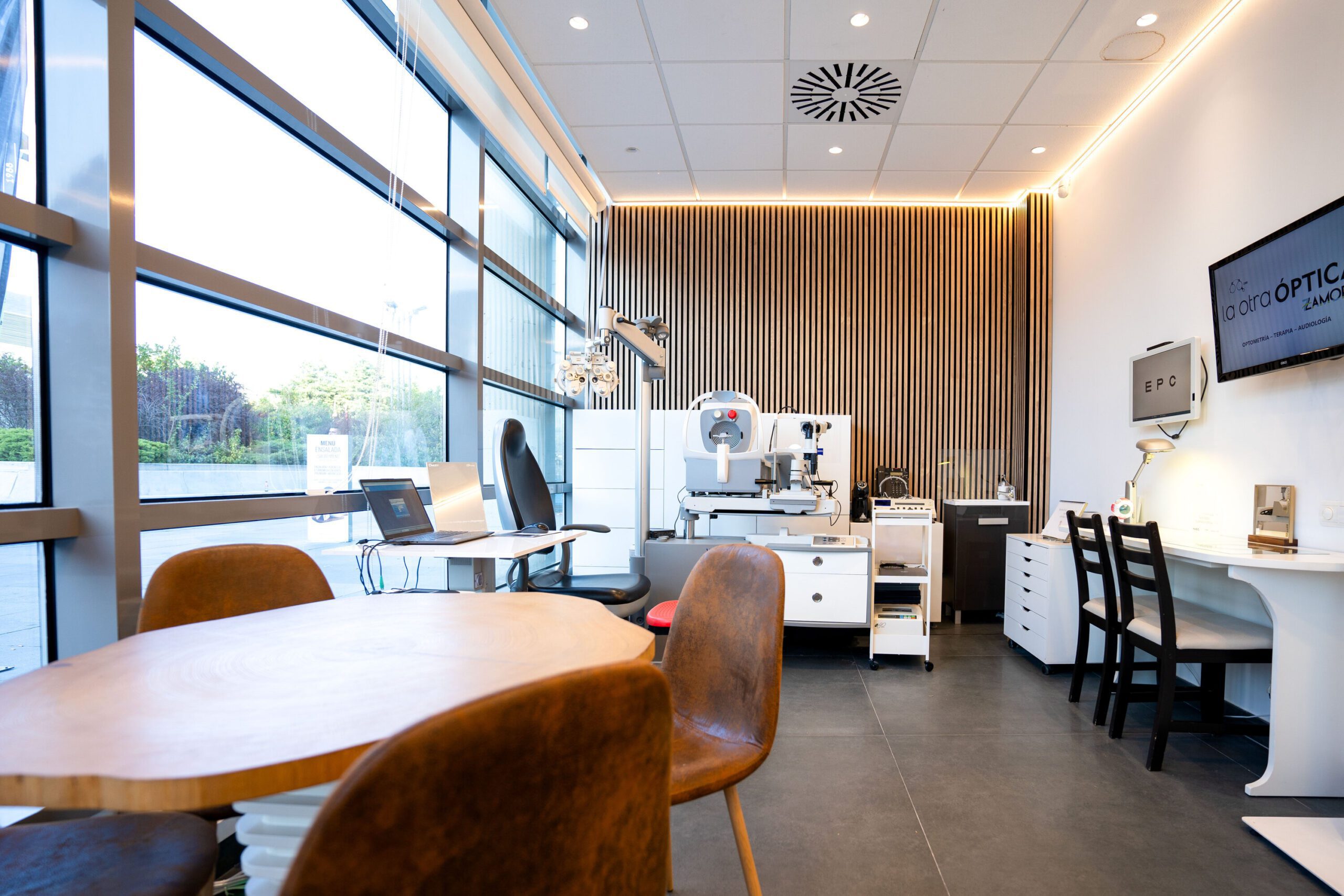 El primer paso en cualquier proyecto de iluminación para ópticas es realizar una evaluación exhaustiva del espacio y las necesidades específicas de la óptica. Como os hemos comentado al principio, este local partía de cero y cuenta con una influencia muy importante de luz natural. Esto era clave para determinar la distribución y el diseño de la óptica, identificando las áreas clave que necesitan iluminación según el momento del día y estación del año.