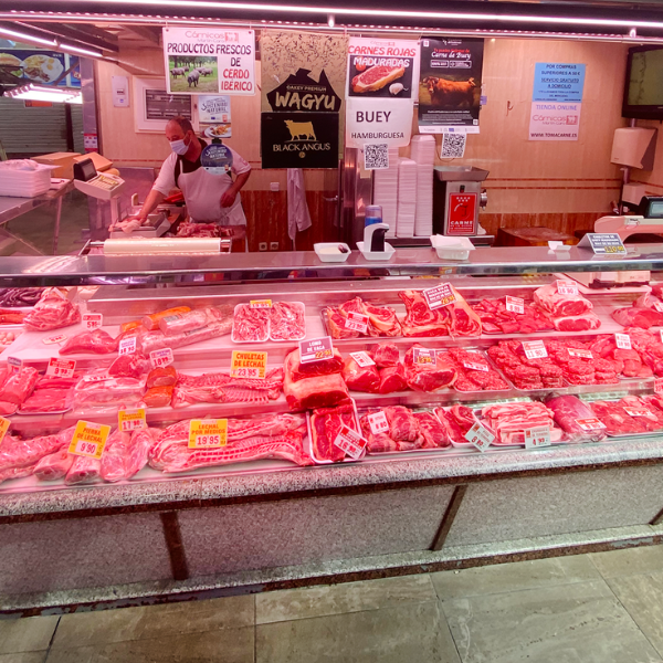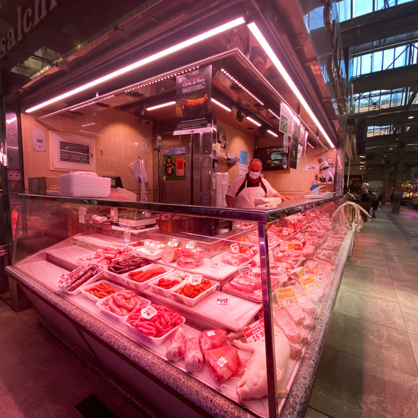 La carnicería Cárnicas Martín Caro está situada en el Mercado de Maravillas de Madrid, es uno de los mercados más grandes de Madrid y con múltiples puestos pertenecientes al mismo sector que comercializan producto similar, por lo que la diferenciación es clave a la hora de desmarcarse de la competencia, y es que no sólo mejorarás exponencialmente la imagen de tu producto gracias a la tonalidad especial de luces para carne roja de Luzco, sino que mejorarás la estética global de todo el puesto, con la intensidad y potencia de las luminarias que además, harán resaltar tu negocio sobre la competencia, captando más fácilmente la atención de nueva clientela. En ciudades como Madrid, donde el tránsito de nuevos habitantes y flujo continuo de estudiantes, trabajadores… es continuo es imprescindible atraer a nuevos clientes, esto es posible con una iluminación para carnicerías de calidad.